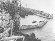 Before storms destroyed the harbour in 1914 it took incredible seamanship to navigate ships safely within the harbour walls. The last, stubborn remains now provide a navigational hazard for the novice sweep. |